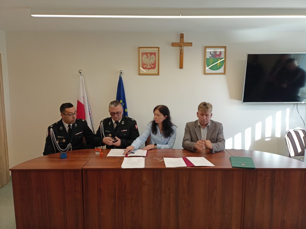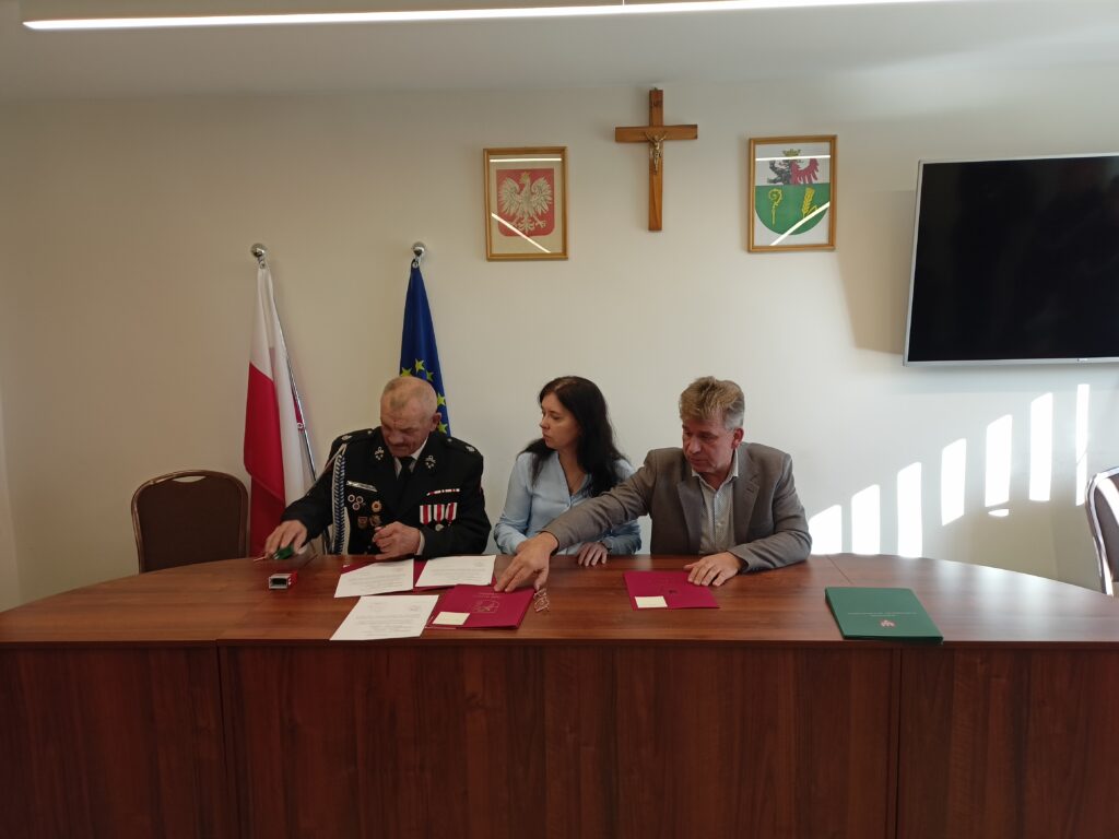 W spotkaniu wzięły udział władze Gminy – Pan Wójt Bogdan Doliński oraz Skarbnik Gminy Monika Roguska, a także przedstawiciele wszystkich obdarowanych jednostek OSP.