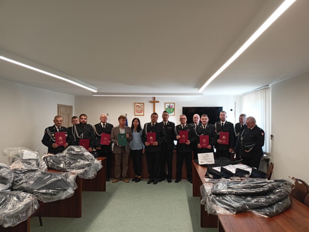- Umundurowanie wyjściowe: Jednostki OSP Gałki, OSP Stara Sucha, OSP Pobratymy, OSP Żarnówka, OSP Polków-Sagały oraz OSP Leśnogóra otrzymały 30 kompletów umundurowania wyjściowego.