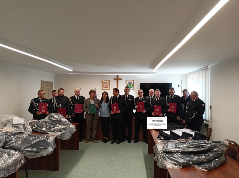 - Umundurowanie wyjściowe: Jednostki OSP Gałki, OSP Stara Sucha, OSP Pobratymy, OSP Żarnówka, OSP Polków-Sagały oraz OSP Leśnogóra otrzymały 30 kompletów umundurowania wyjściowego.