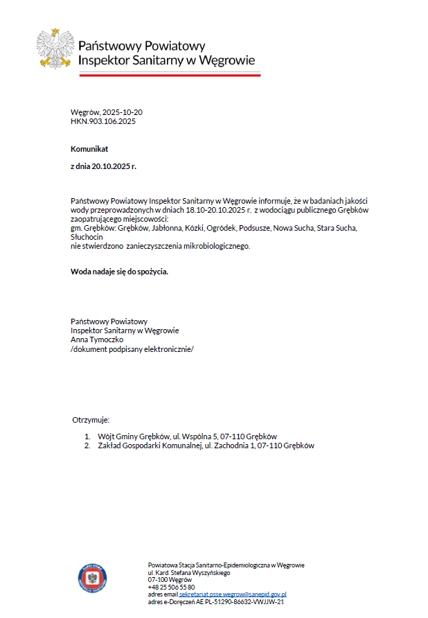OCENA JAKOŚCI WODY GMINY GRĘBKÓW